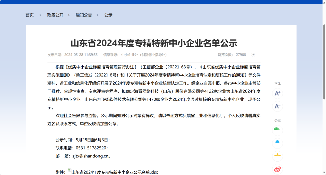 近日,山東省工業(yè)和信息化廳公示了山東省2024年度專精特新中小企業(yè)名單。經(jīng)自評申報、市級審核推薦、省級專家評審等程序,山東水發(fā)黃水東調(diào)工程有限公司進(jìn)入公示名單,順利通過山東省2024年度專精特新中小企業(yè)認(rèn)定。