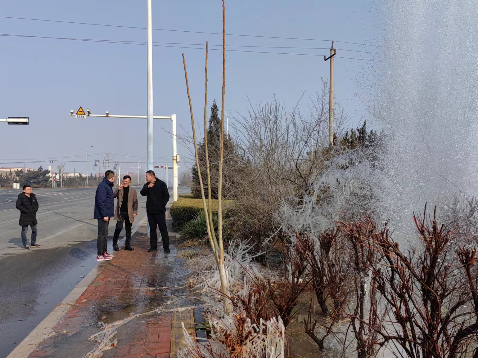 甲辰龍年大年初一早7點(diǎn),正當(dāng)大家沉浸在濃厚的春節(jié)節(jié)日氣氛中,濰坊供水集團(tuán)值班熱線接到群眾報(bào)修電話,發(fā)現(xiàn)供水管道疑似破裂漏水,附近200多家企業(yè)和1000多戶居民用水受到嚴(yán)重影響,供水集團(tuán)立即啟動(dòng)供水突發(fā)事件應(yīng)急預(yù)案,值班領(lǐng)導(dǎo)張明興、杜鑫組織客戶服務(wù)部、工程管理部、惠澤水廠等維修工作人員組成搶修隊(duì),第一時(shí)間趕赴現(xiàn)場(chǎng),根據(jù)現(xiàn)場(chǎng)情況制定搶修方案,全力展開(kāi)管道搶修。