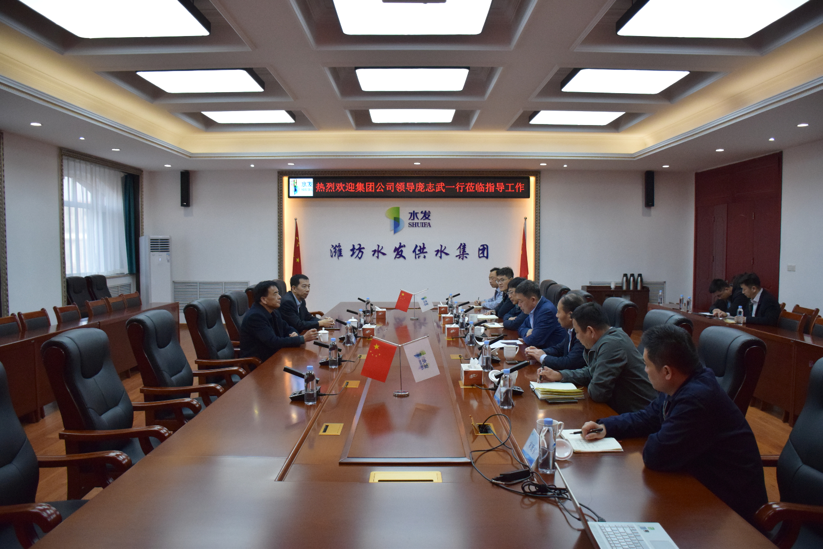 3月14日,水發(fā)水務(wù)控股集團(tuán)有限公司(籌)工會(huì)主席龐志武、統(tǒng)戰(zhàn)部副部長(zhǎng)盧昌誠(chéng)一行到濰坊區(qū)域調(diào)研指導(dǎo)工作,水發(fā)水控濰坊區(qū)域總經(jīng)理、供水集團(tuán)董事長(zhǎng)張勇及相關(guān)公司負(fù)責(zé)人參加座談。